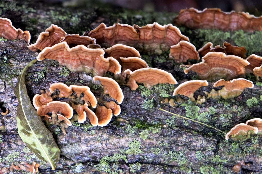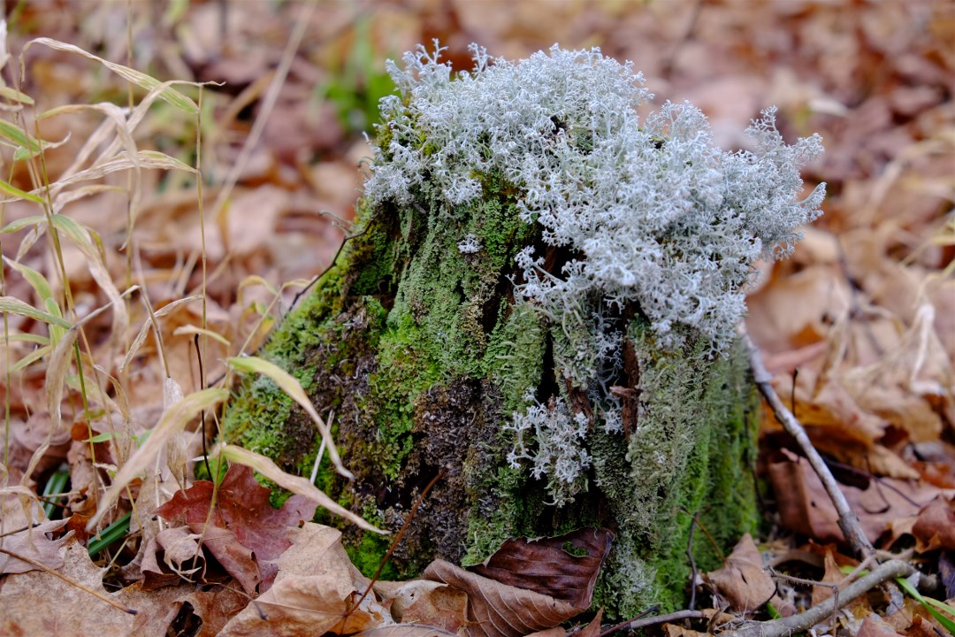 The leaves are changing rapidly. It seemed by the hour to us. The forest floor is carpeted with leaves however quite a bit of green remains.