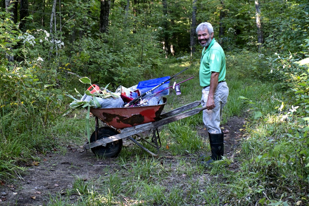 The dirt road from our property line to the cabin is over 1600 feet. We have been using the wheelbarrow and dolly to move in. We need to fix the road so the car can get all the way to the cabin.